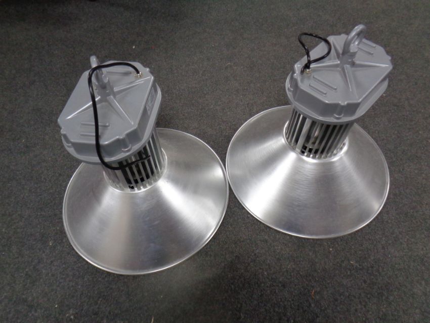 A pair of industrial style light fittings, diameter 51 cm