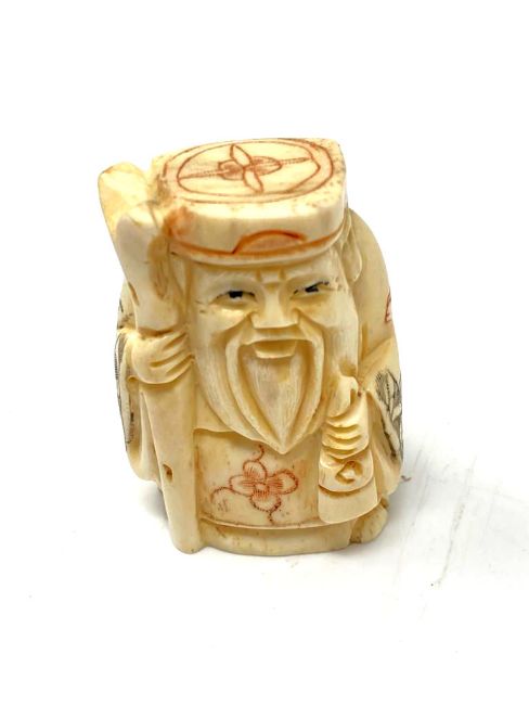 A carved Chinese bone netsuke - Bearded Gentleman with staff and gown