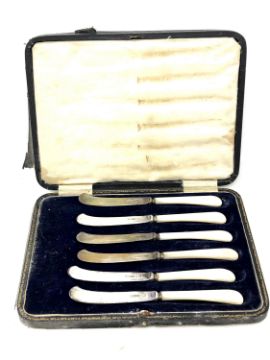 A set of six silver bladed and mother of pearl butter knives, Sheffield 1922