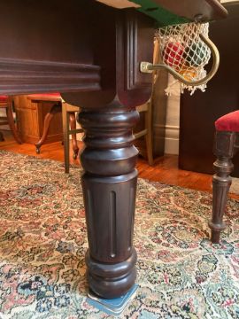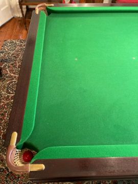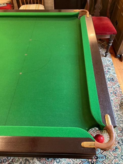 With the three section mahogany top in place it extends the width and length diameters slightly as it over hangs the table edge. The condition is very good and has hardly any signs of use. The mahogany three section top has very minor scuffs only, a small heat mark which is not easy to see also. Important note : This item is located at a prorperty in the area of Tynemouth, postcode NE30. The buyer must arrange to collect the lot from this location, they must be capable of removing the lot in full with no additional help. The light fitting is included in the lot but this also requires disconnecting before removal from site, the office can help with arranging this for the purchaser at cost. The location address is ground floor with good access.