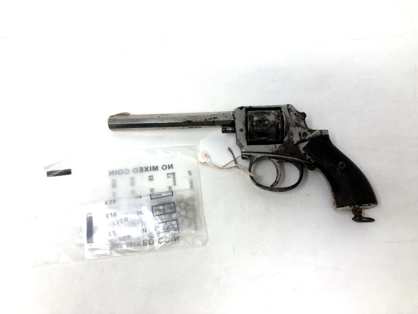 An early 20th century 9-shot blank firing starter pistol, together with a quantity of caps