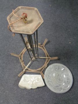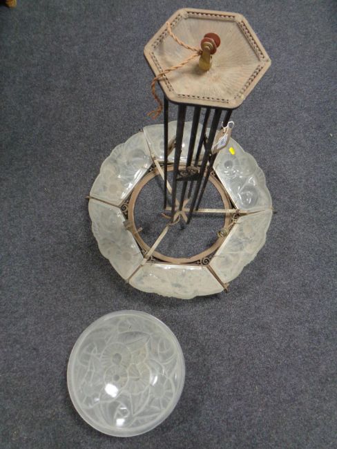 An impressive early 20th century French hanging ceiling light with opaque glass shades.