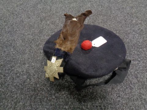 A Scottish Highlanders beret with badge and plume