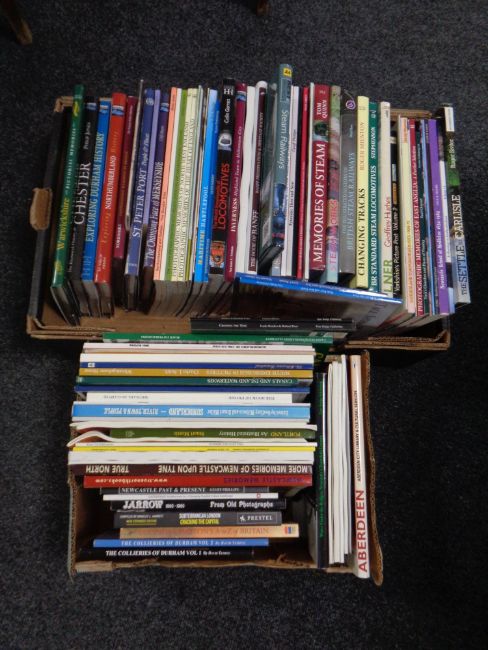 Two boxes of a large quantity of hardback and paperback books, steam railways, locomotives etc.