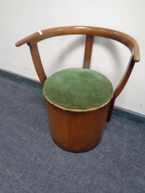 A 20th century stained beech storage elbow chair.