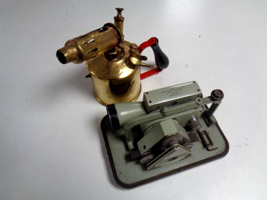 A 20th century Cooke Troughton & Simms surveyor's level, together with a vintage brass Max Sievert blow lamp.