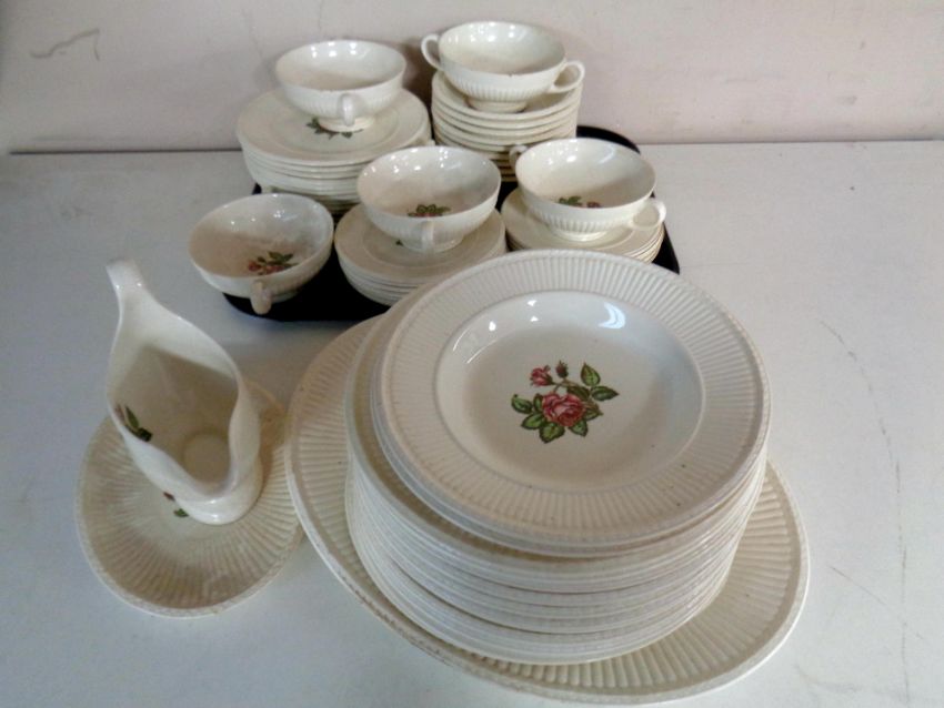 A fifty-five piece Wedgwood Moss Rose dinner service