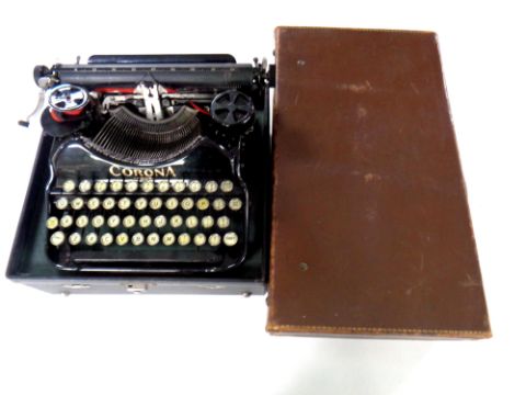 A cased vintage Corona typewriter together with a vintage leather luggage case