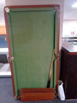 A 6ft snooker table with cues and accessories