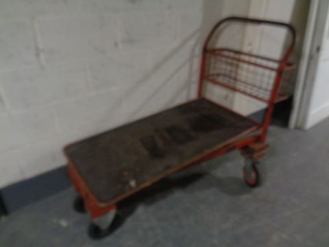 A large flatbed trolley (red)