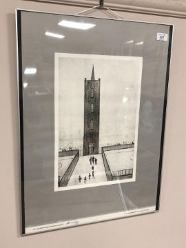 After Lawrence Stephen Lowry 'The Tall Tower' from the 1977 L.S. Lowry Mottram Memorial Exhibition, with signature J. Connelly, numbered in pencil 93 of 249
