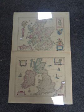 Two colour engraved maps after Willem & Johan Blaeu, Scotland and the British Isles and Ireland, printed by John Bartholomew and Son of Edinburgh