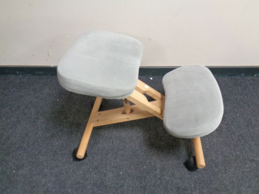 A kneeling chair on casters