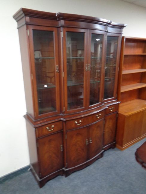 A Regency style inlaid mahogany four door glazed bookcase fitted cupboards and drawers beneath