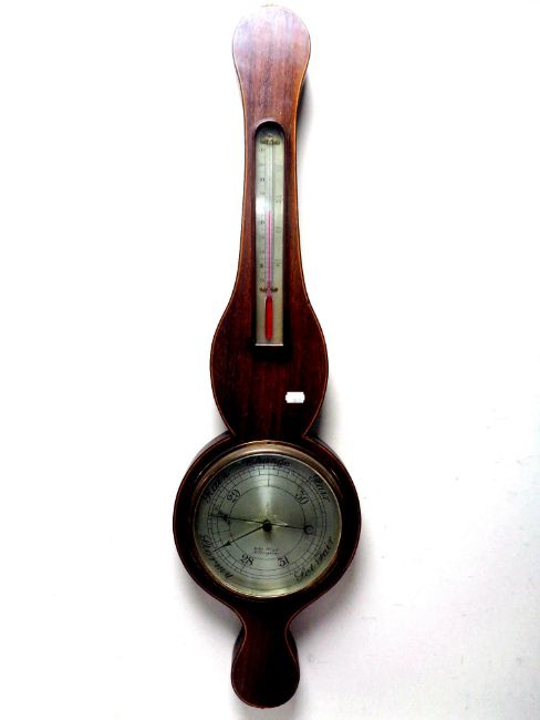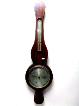 A mahogany cased banjo barometer by John Derry of Nottingham, with silver dial.