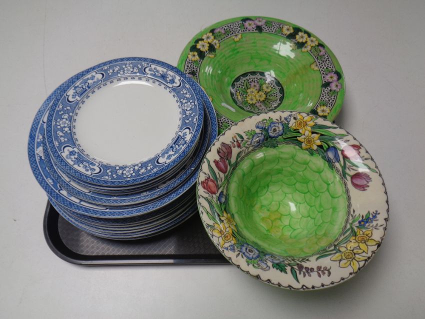 A tray containing sixteen pieces of Maling oriental dinnerware together with two further Maling bowls