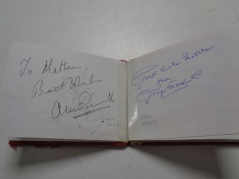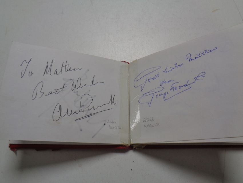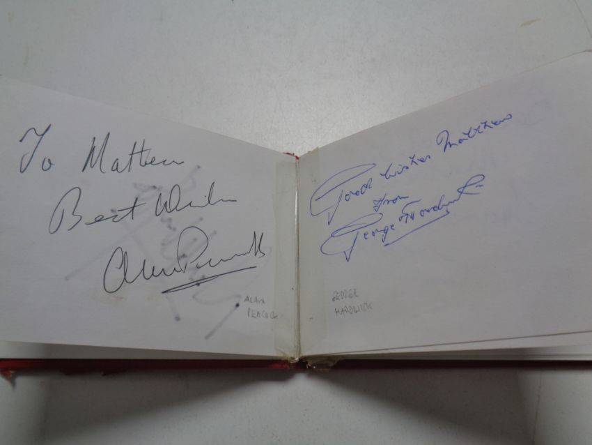 A Middlesborough Football Club autograph album, Nigel Pearson, Alan Peacock, Derrick Whyte, Sir Stanley Matthews etc