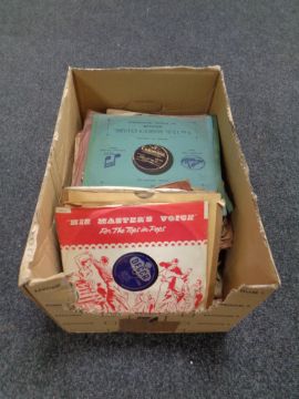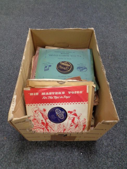 An antique oak cased Colombia Grafonola together with a box containing a quantity of vinyl 78 records