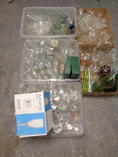 Five boxes and crates of a large quantity of assorted glass ware