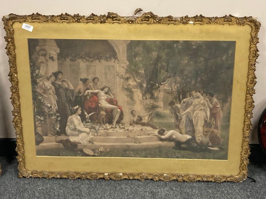 A late nineteenth century pre-Raphaelite colour print in ornate gilt frame, 76 cm x 48 cm, framed.