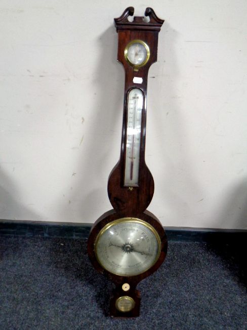 An antique banjo barometer by R Neale Hunton with silvered dial