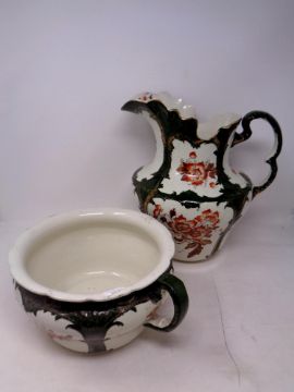 A 19th century floral patterned wash jug and chamber pot