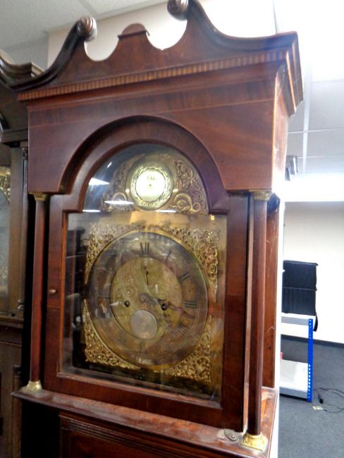 A 19th century inlaid mahogany longcase clock by J. Orr of Greenock, with brass dial, no pendulum or weights