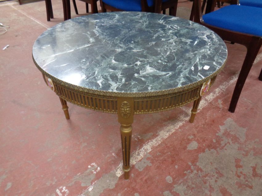 A French style gilt coffee table with marble effect top