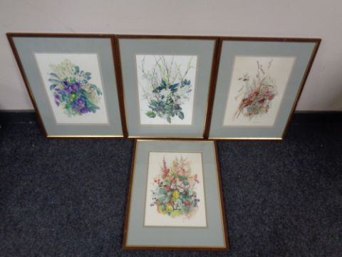 Four Henry Holzer watercolours, Spring, Summer, Autumn and Winter Flowers, dated 1976
