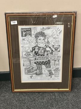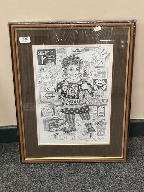 After Robert Olley : Jo Brand, monochrome print, signed in pencil, 27 cm x 40 cm, framed.