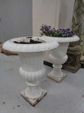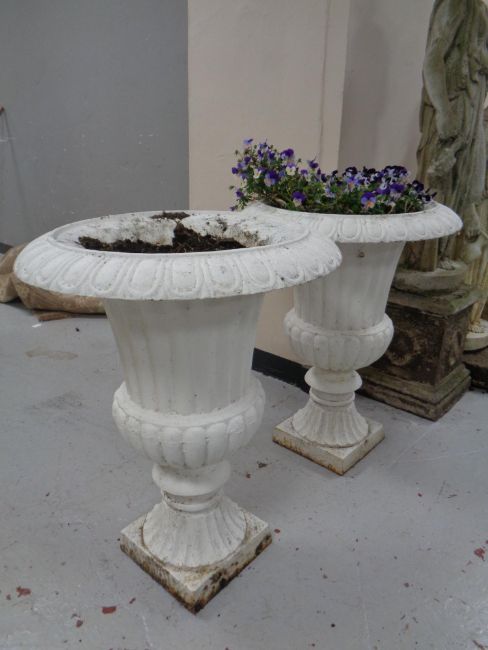 A pair of Victorian style cast iron garden urns