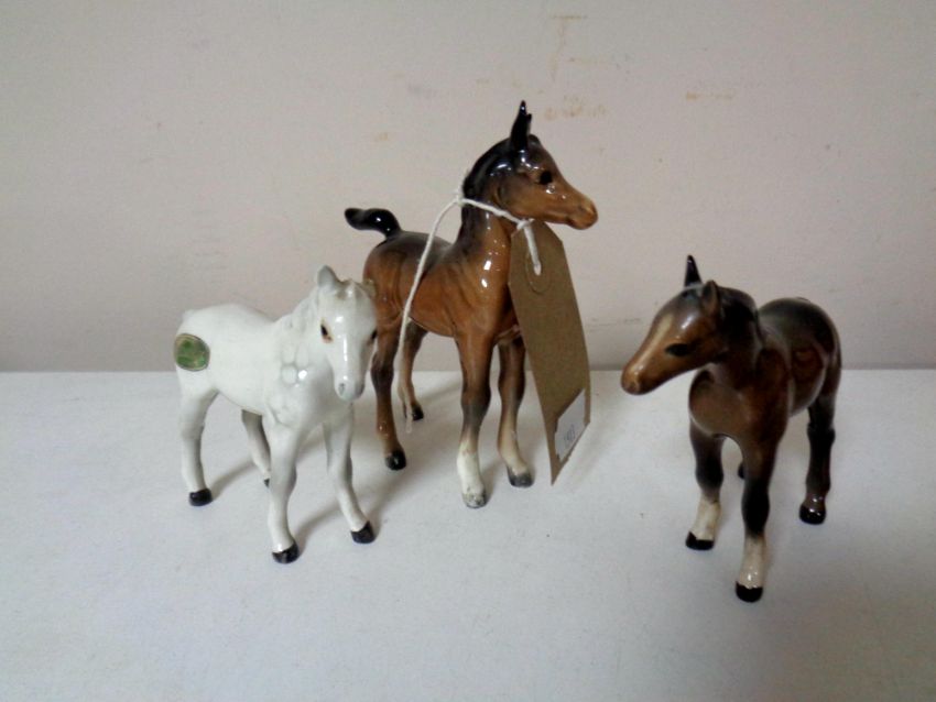 A Beswick foal pony, Dapple grey, together with two further Beswick ponies (brown)