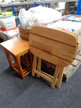 Two folding pine occasional tables and a nest of tables