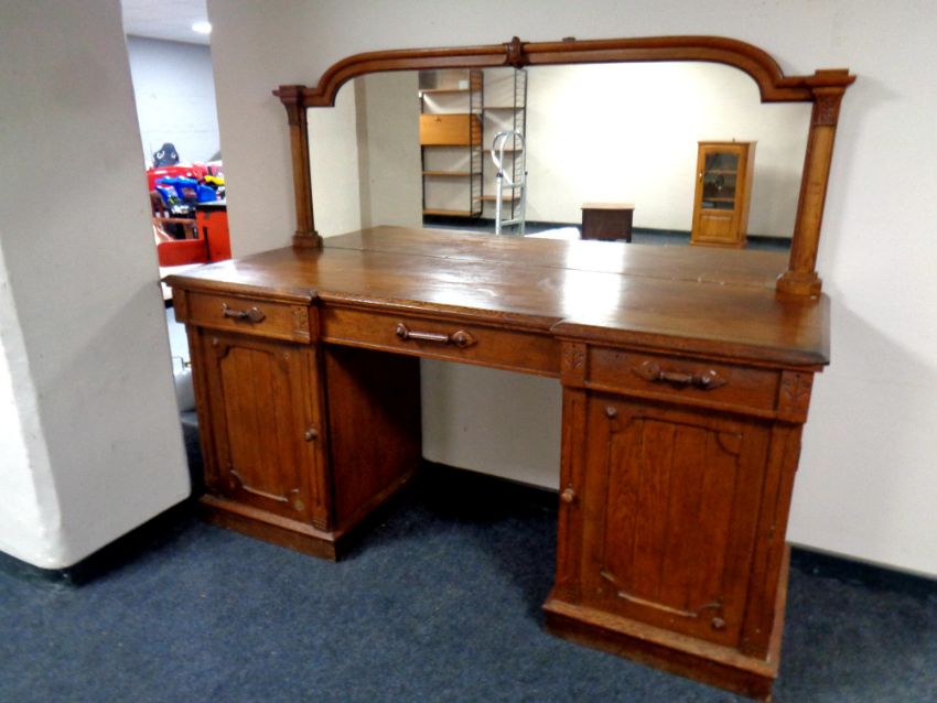 A 19th century oak pedestal mirror backed sideboard