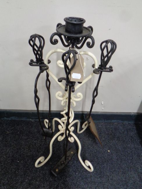 A four piece cast iron companion set on stand