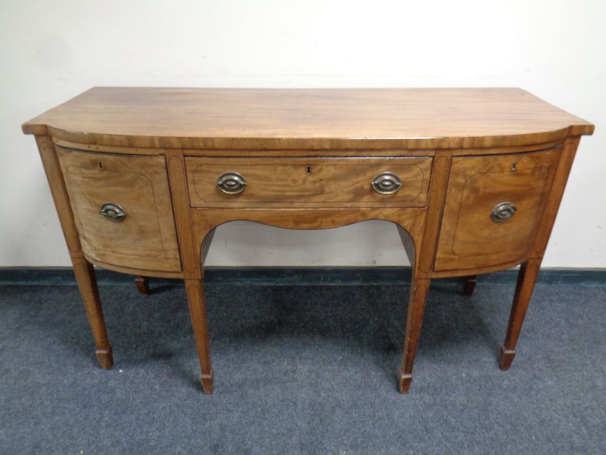 A 19th century mahogany bow-fronted triple door sideboard on raised legs