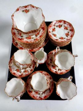 A tray of thirty-nine pieces of 19th century floral tea china.