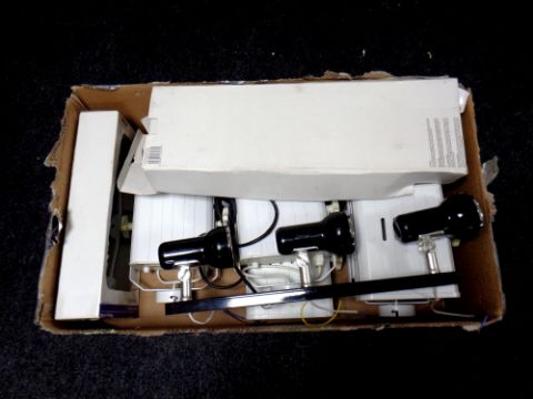 A box of assorted lighting : strips, spots, halogen etc