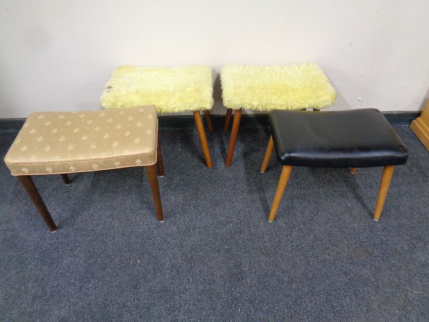 Four 20th century dressing table stools on teak legs