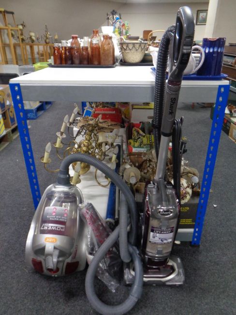 A Vax power 7 cylinder vacuum and a Shark upright vacuum with accessories