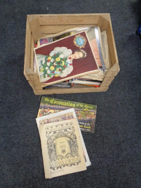 A wooden crate of a large quantity of commemorative newspapers and magazines