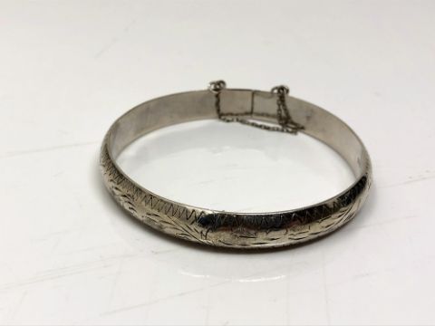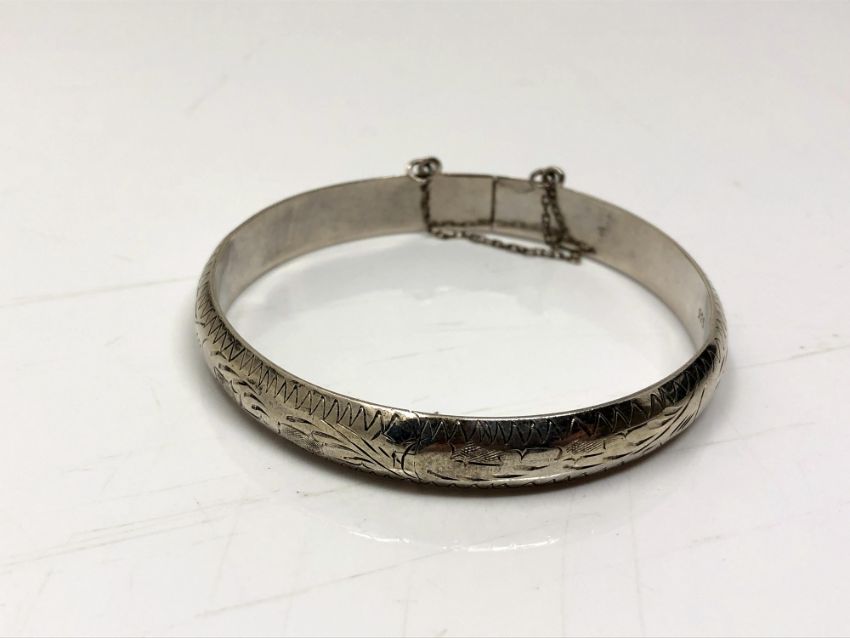 A sterling silver bangle with safety chain