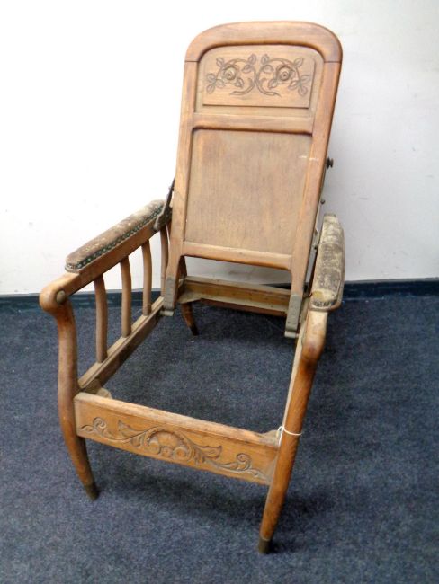An Edwardian oak adjustable armchair.