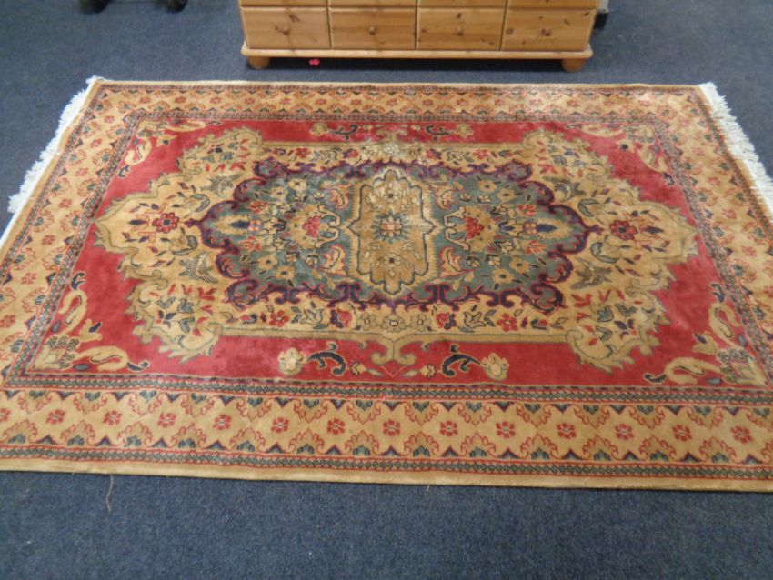 A Persian design fringed carpet on gold ground, 185 cm x 285 cm