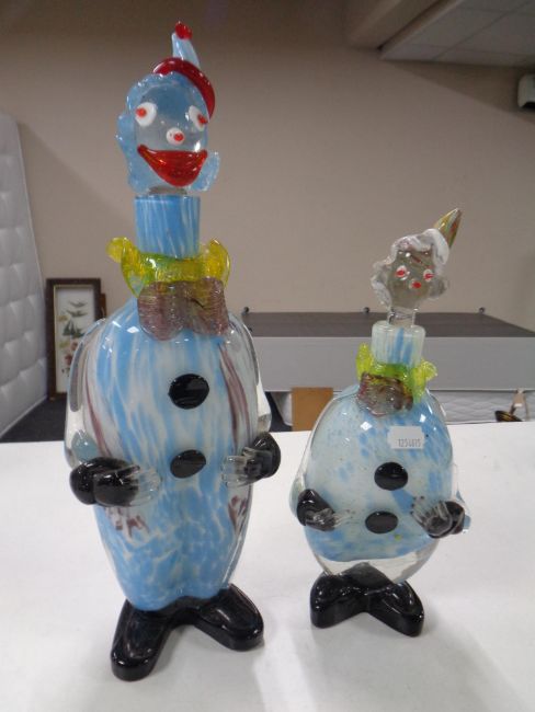 Two graduated Murano glass clown decanters, blue