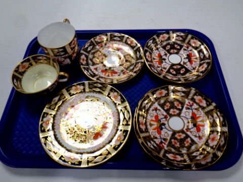 A tray of eight pieces of Royal Crown Derby Imari tea china