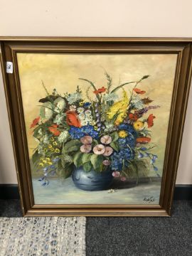 Continental school : Still life with flowers in a vase, oil on canvas, 55 x 65 cm
