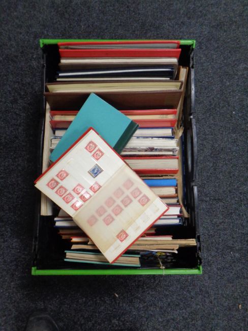 A box of approximately 40 stamp albums containing stamps of the world
