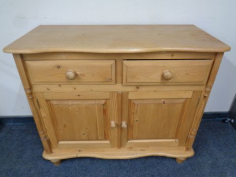 A stripped pine serpentine fronted double door sideboard, fitted two drawers