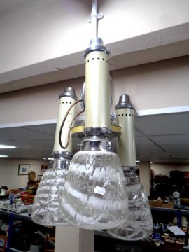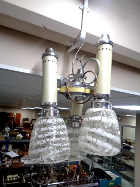 An Art Deco three-way chromed light fitting with glass shades